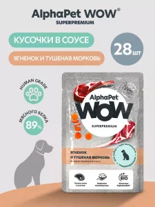 AlphaPet WOW (АльфаПет) 0,085кг пауч ягненок и тушеная морковь ломтики в соусе для собак с чувствительным пищеварением (655315)