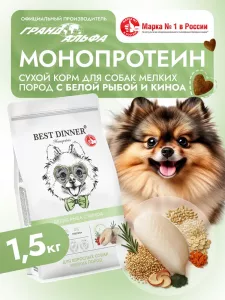 Best Dinner Monoprotein 1,5кг белая рыба с киноа сухой для собак мелких пород (408832)
