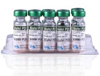 Компоненты вакцины Биофел PCH расфасованы в стеклянные флаконы по 1.0 см3 (1 доза). Флаконы упакованы в пластиковые контейнеры по 10 доз (10 флаконов).