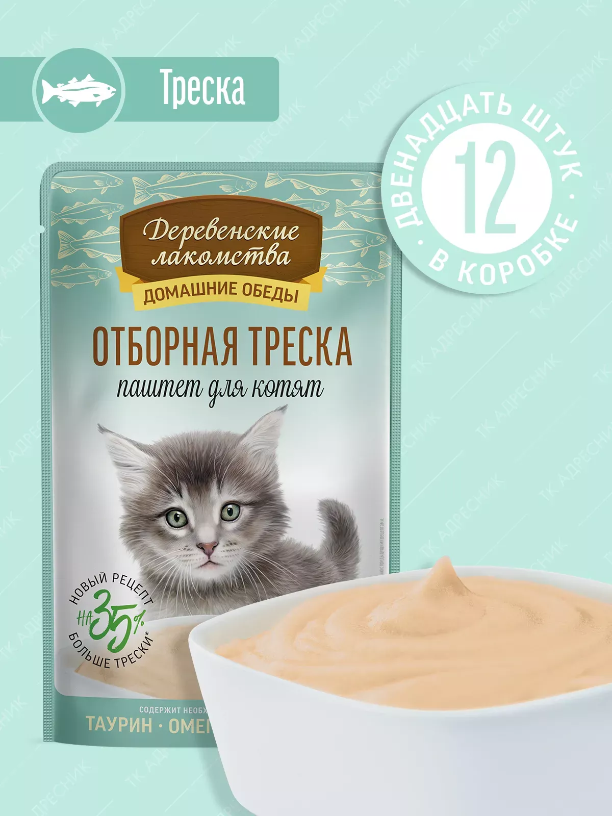 Деревенские лакомства 0,07кг Домашние обеды Отборная треска паштет для котят, пауч (79219869)