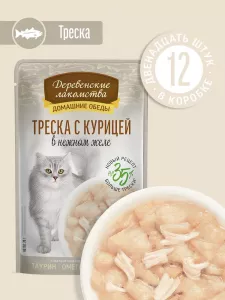 Деревенские лакомства 0,07кг Домашние обеды Треска с курицей в нежном желе для кошек, пауч (79219906)
