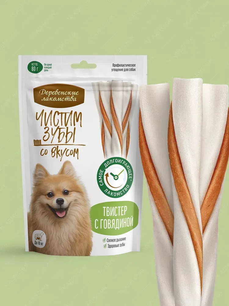 Твистер с говядиной - наше самое долгоиграющее лакомство. Эффективно удаляет зубной налет, предотвращая образование зубного камня. Мясная начинка приготовлена из отборных ингредиентов и не содержит искусственных консервантов и красителей. Теперь чистить зубы не только просто, но и вкусно!
