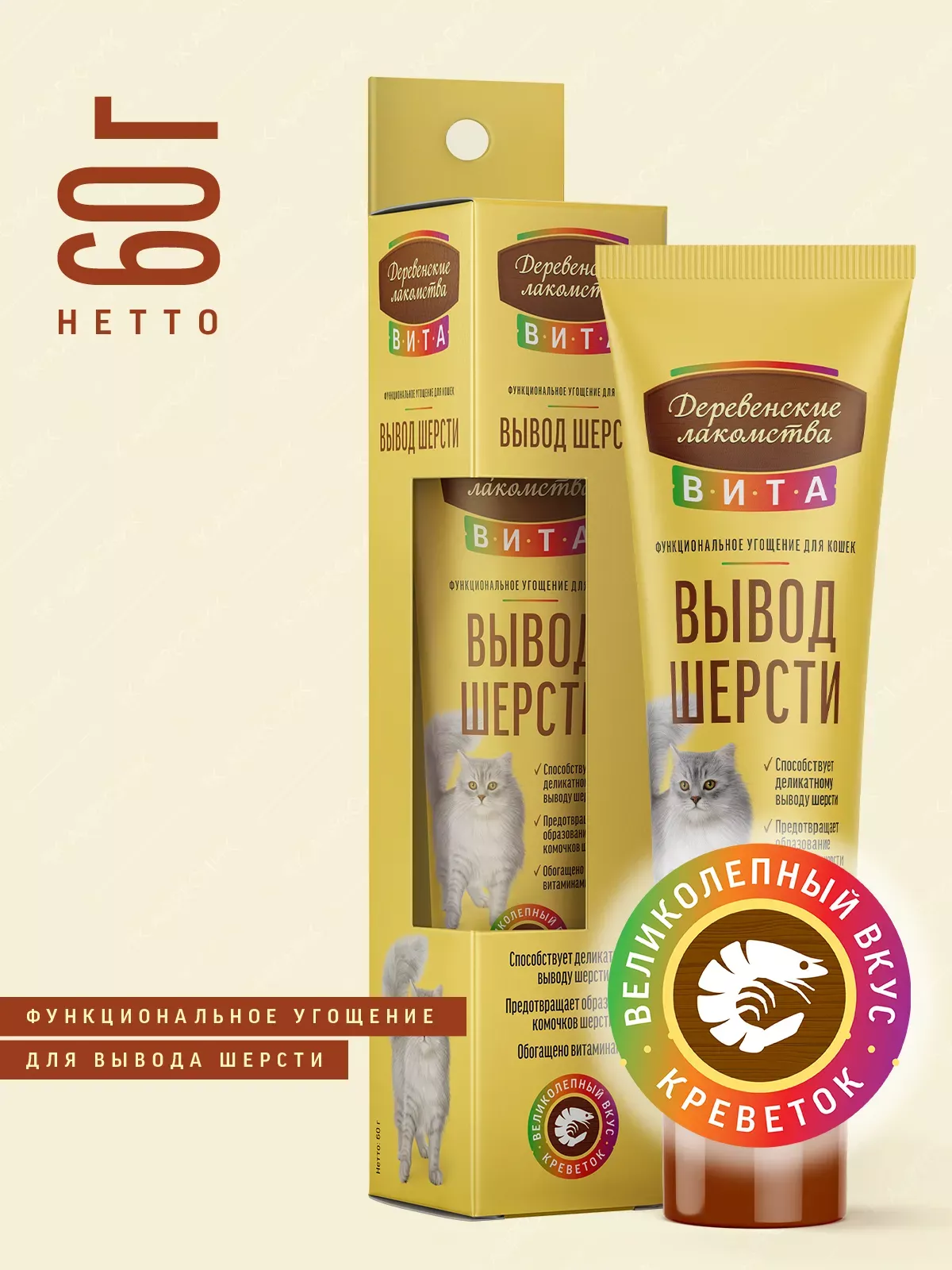 Деревенские лакомства ВИТА 0,06кг паста для вывода шерсти со вкусом креветки для кошки (76051325)