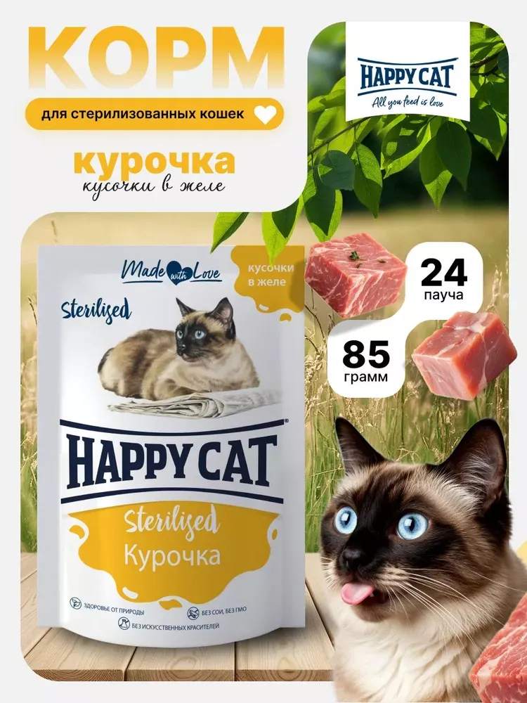Happy Cat 0,085кг курочка кусочки и ломтики в яичном соусе для кошек (406005)