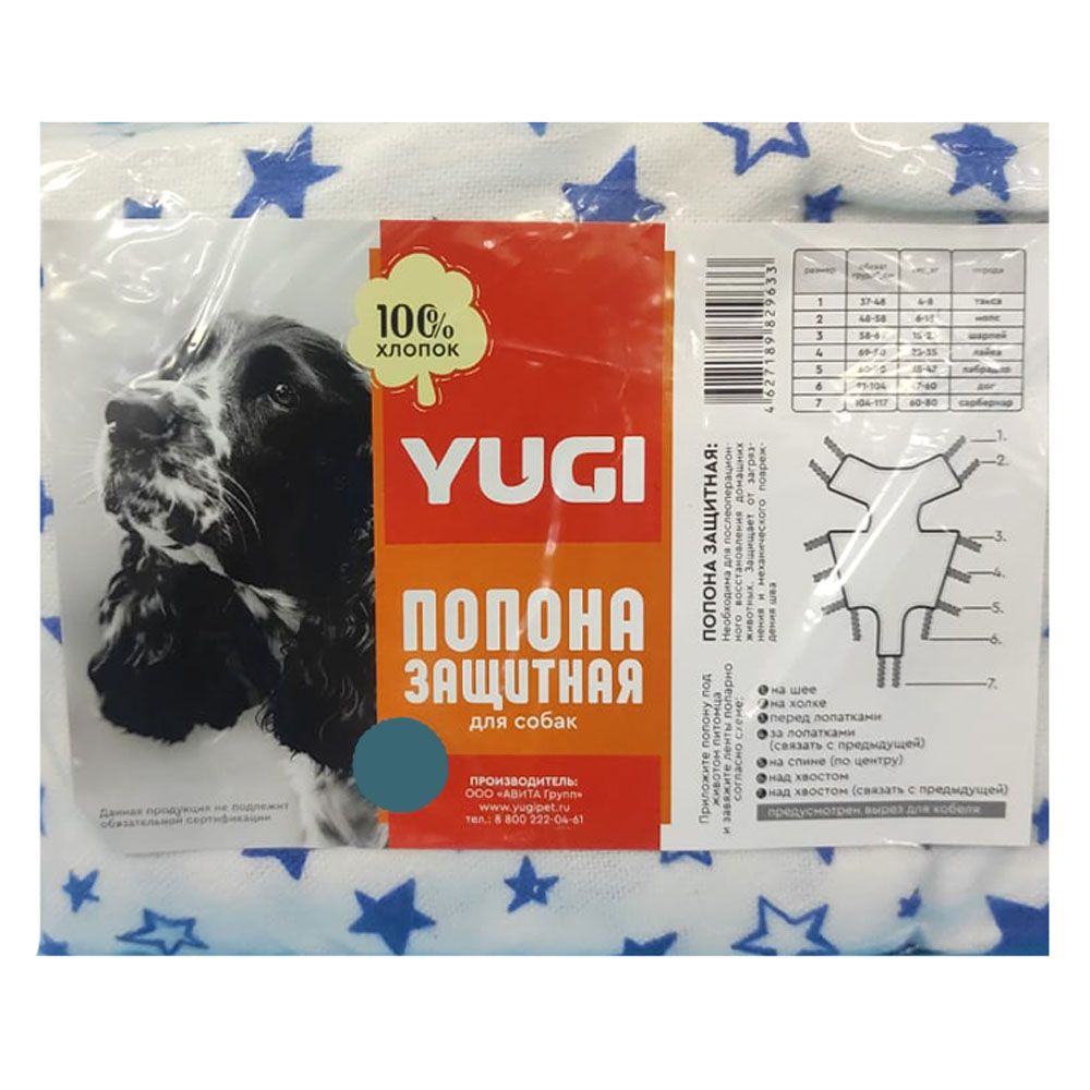 Попона Юги для Собак №6 - предназначена для предотвращения разлизывания ран, защиты тела животного после медицинских операций, для фиксации перевязочного материала, а также для иных гигиенических целей. Выполнена из 100% хлопка.