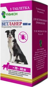 Состав: В 1,0 г препарата содержится 500 мг флураланера, а также вспомогательные вещества: лактозы моногидрат, дрожжи неактивные, целлюлоза микрокристаллическая, поливинилпирролидон, кросповидон, натрия лаурилсульфат, аспасвит Ц200, ароматическая добавка, кальция стеарат, тальк. В одной таблетке Ветланер 112,5 мг, Ветланер 250 мг, Ветланер 500 мг и Ветланер 1000 мг в качестве действующего вещества содержится соответственно 112,5 мг, 250 мг, 500 мг и 1000 мг флураланера. По внешнему виду Ветланер 112,5 мг представляет собой плоскоцилиндрические таблетки с риской или двояковыпуклые таблетки, Ветланер 250 мг, Ветланер 500 мг и Ветланер 1000 мг – двояковыпуклые таблетки светло-серого, светло-бежевого или светло-коричневого цвета, возможно наличие более темных или белых вкраплений. Препарат выпускают расфасованным по 1 или 3 таблетки: Ветланер 112,5 мг, Ветланер 250 мг и Ветланер 500 мг – в блистер, Ветланер 1000 мг – в полимерную банку,