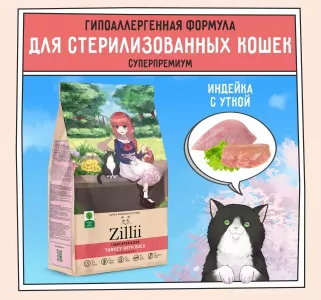 ZILLII (Зилли) Cat Sterilized Light 0,4кг индейка и утка сухой для кошек с избыточным весом (350884)