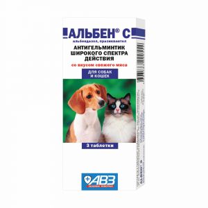 Альбен-С (АВЗ) антигельминтик для кошек и собак, 3 таблетки 1таб./5кг (ЛИЦЕНЗИЯ)