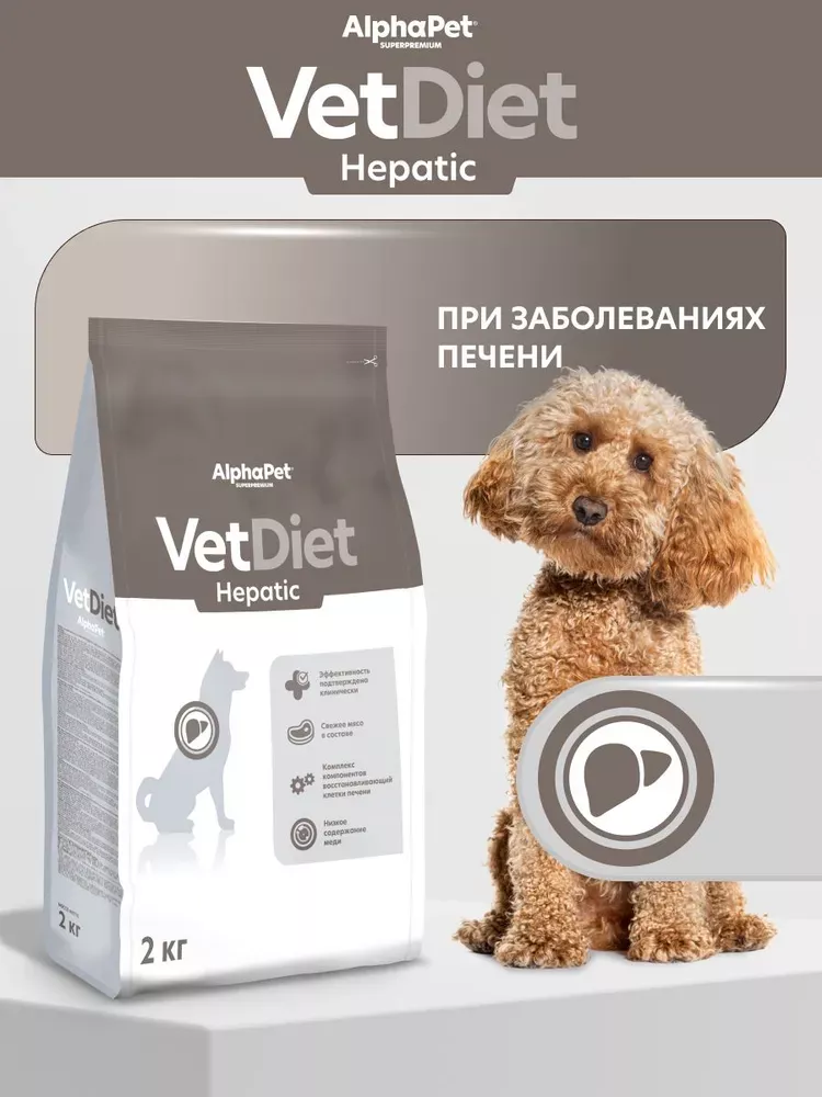 AlphaPet Vet Diet (АльфаПет) 2кг Hepatic сухой при заболеваниях печени для собак (655100)