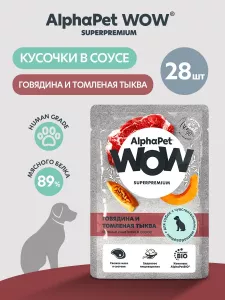 AlphaPet WOW (АльфаПет) 0,085кг пауч говядина и томленая тыква ломтики в соусе для собак с чувствительным пищеварением (655339)