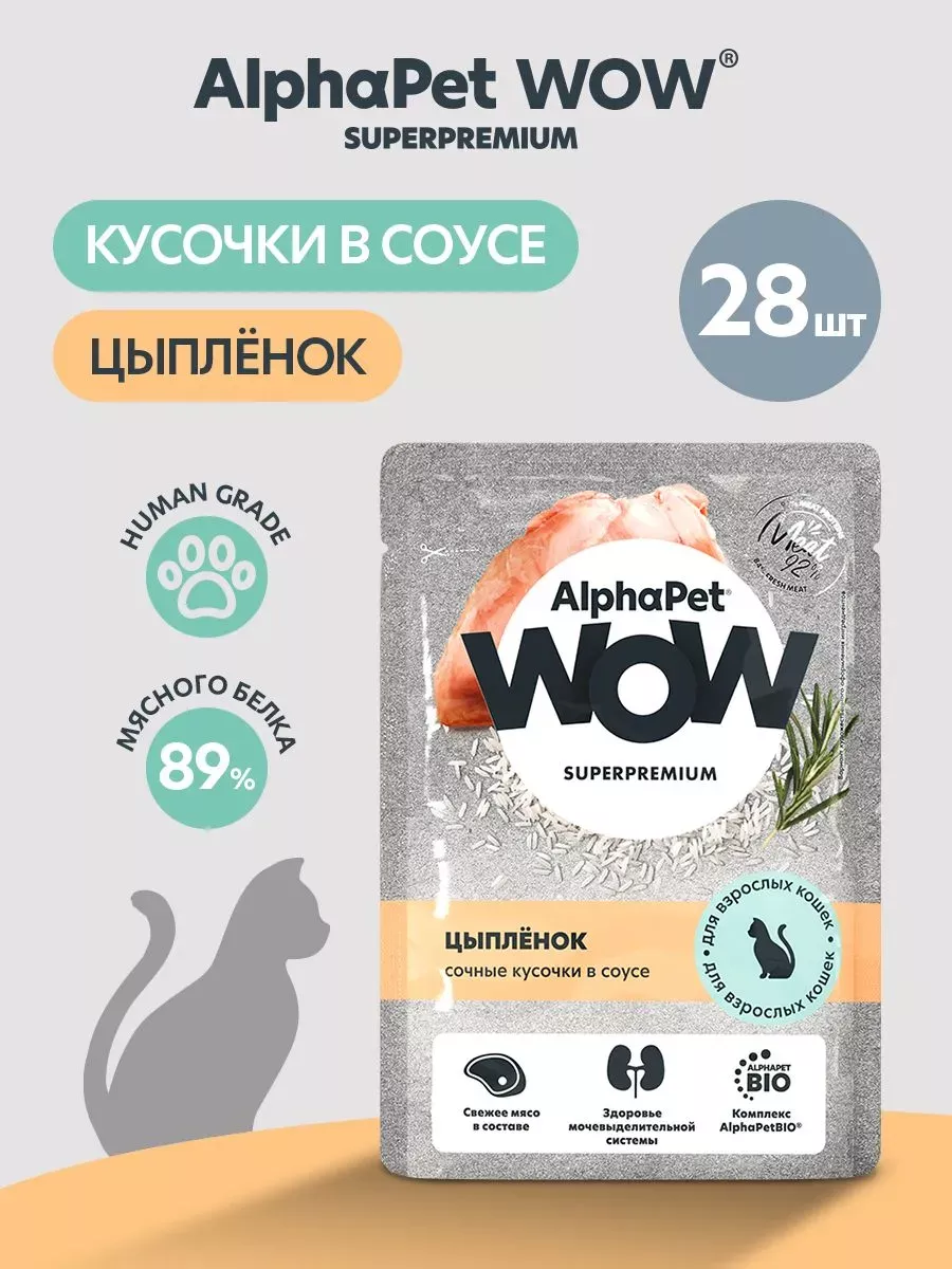 AlphaPet WOW (АльфаПет) 0,085кг пауч цыпленок кусочки в соусе для кошек (655247)