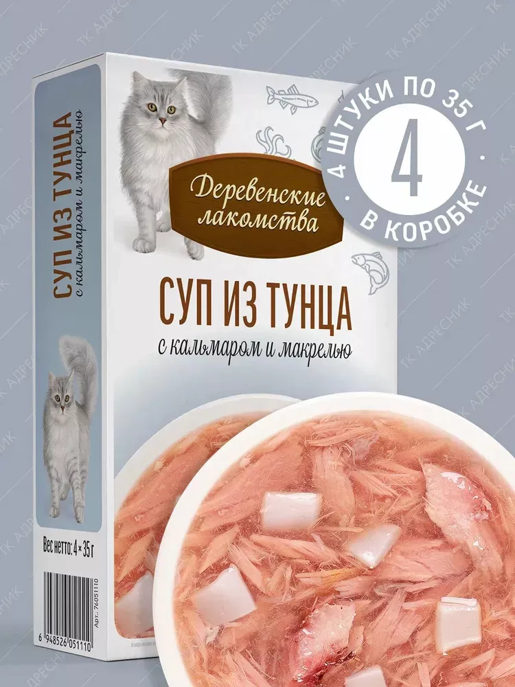 Деревенские лакомства 0,035кг*4шт суп из тунца с кальмаром и макрелью, пауч (76051110)
