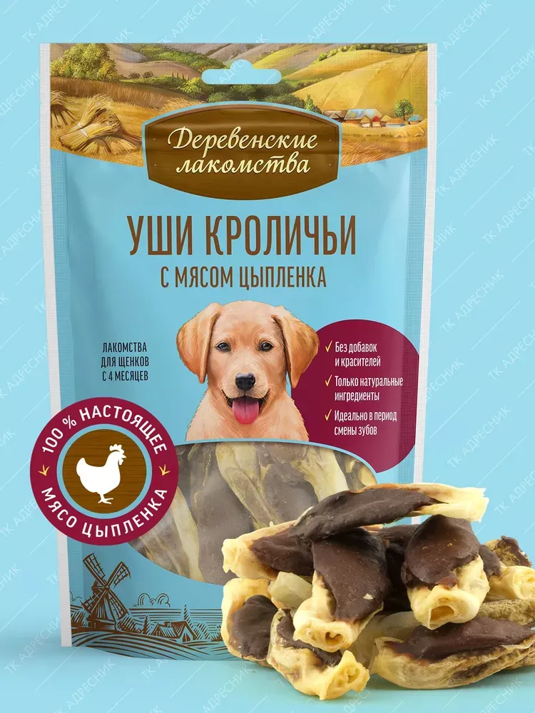 Деревенские лакомства 0,09кг уши кроличьи с мясом цыпленка для щенков (арт.76051073) New