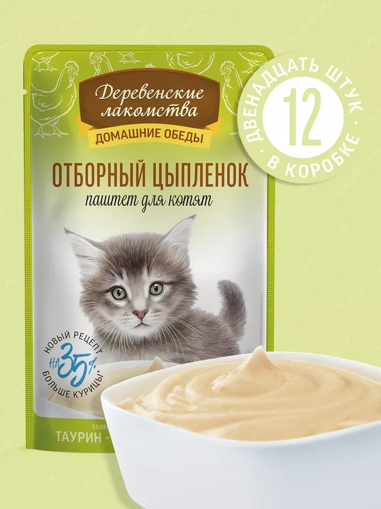 Деревенские лакомства Домашние обеды 0,07кг Отборный цыпленок паштет для котят (79218954) New