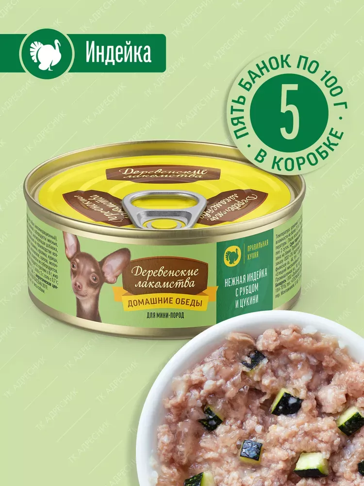 Деревенские лакомства Домашние обеды 0,1кг нежная индейка с рубцом и цукини консервы для собак (76135443)