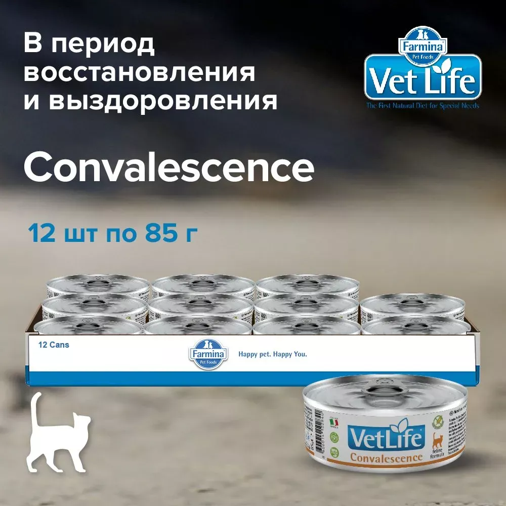 Farmina Vet Life Convalescence - полнорационный диетический влажный корм для взрослых кошек в период выздоровления. Диета назначается для пациентов в период восстановления после перенесенных заболеваний.