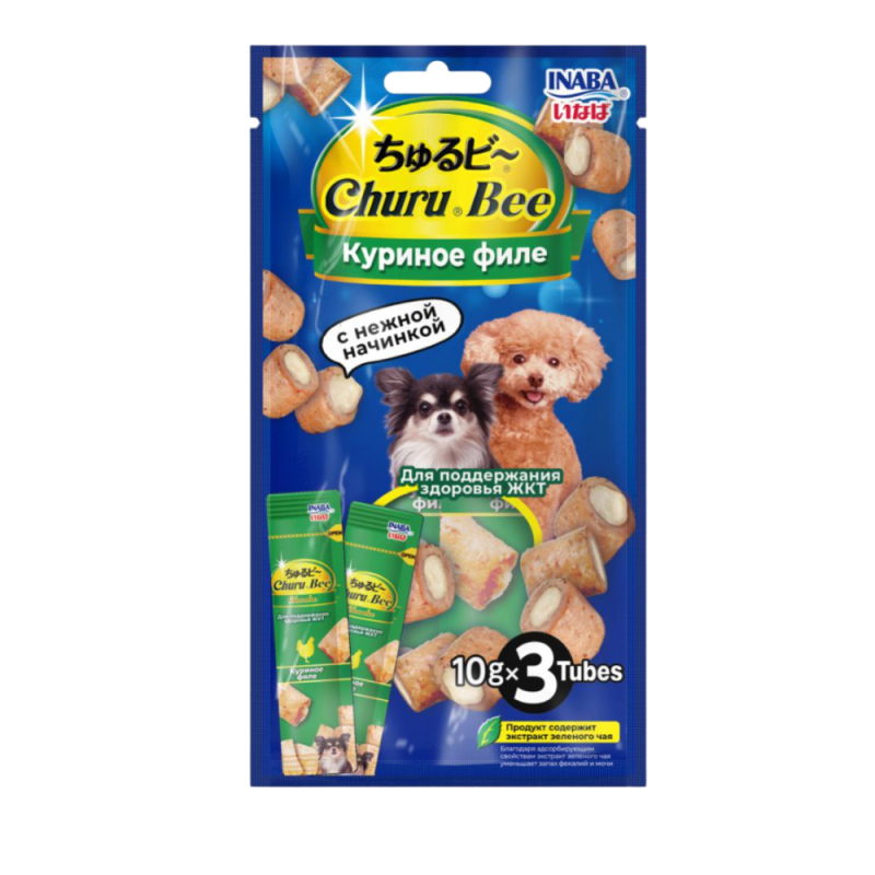 Запеченные трубочки Churu Bee (ЧУРУ БИ) с нежной кремовой начинкой на основе куриного филе от японского производителя Inaba, трубочки имеют усиленный вкус вяленого тунца кацуо, поэтому лакомство не оставит равнодушным даже самых привередливых собак. Лактобактерии и олигосахариды в составе лакомства способствуют поддержанию здоровья ЖКТ. Корма и лакомства Inaba отличаются высоким качеством и неповторимым вкусом, ведь они изготавливаются только из отборных традиционных японских ингредиентов! Во все продукты добавлен экстракт зеленого чая, который, благодаря содержанию катехина, нейтрализует неприятные запахи содержимого кишечника. Лакомство обогащено витамином Е - натуральным антиоксидантом, поддерживающим иммунную систему, не содержит искусственных добавок, красителей и консервантов.