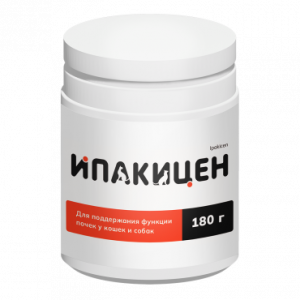 «Ипакицен» является комбинированной кормовой добавкой, содержание в которой карбоната кальция и хитозана способствует поддержанию физиологического статуса животных с патологиями почек. Биологические свойства кормовой добавки обусловлены входящими в состав компонентами, которые связывают ионы фосфатов в корме, снижая их биологическую доступность, способствуют улучшению состояния животного и поддерживают физиологическую функцию почек.
