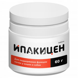 «Ипакицен» является комбинированной кормовой добавкой, содержание в которой карбоната кальция и хитозана способствует поддержанию физиологического статуса животных с патологиями почек. Биологические свойства кормовой добавки обусловлены входящими в состав компонентами, которые связывают ионы фосфатов в корме, снижая их биологическую доступность, способствуют улучшению состояния животного и поддерживают физиологическую функцию почек.