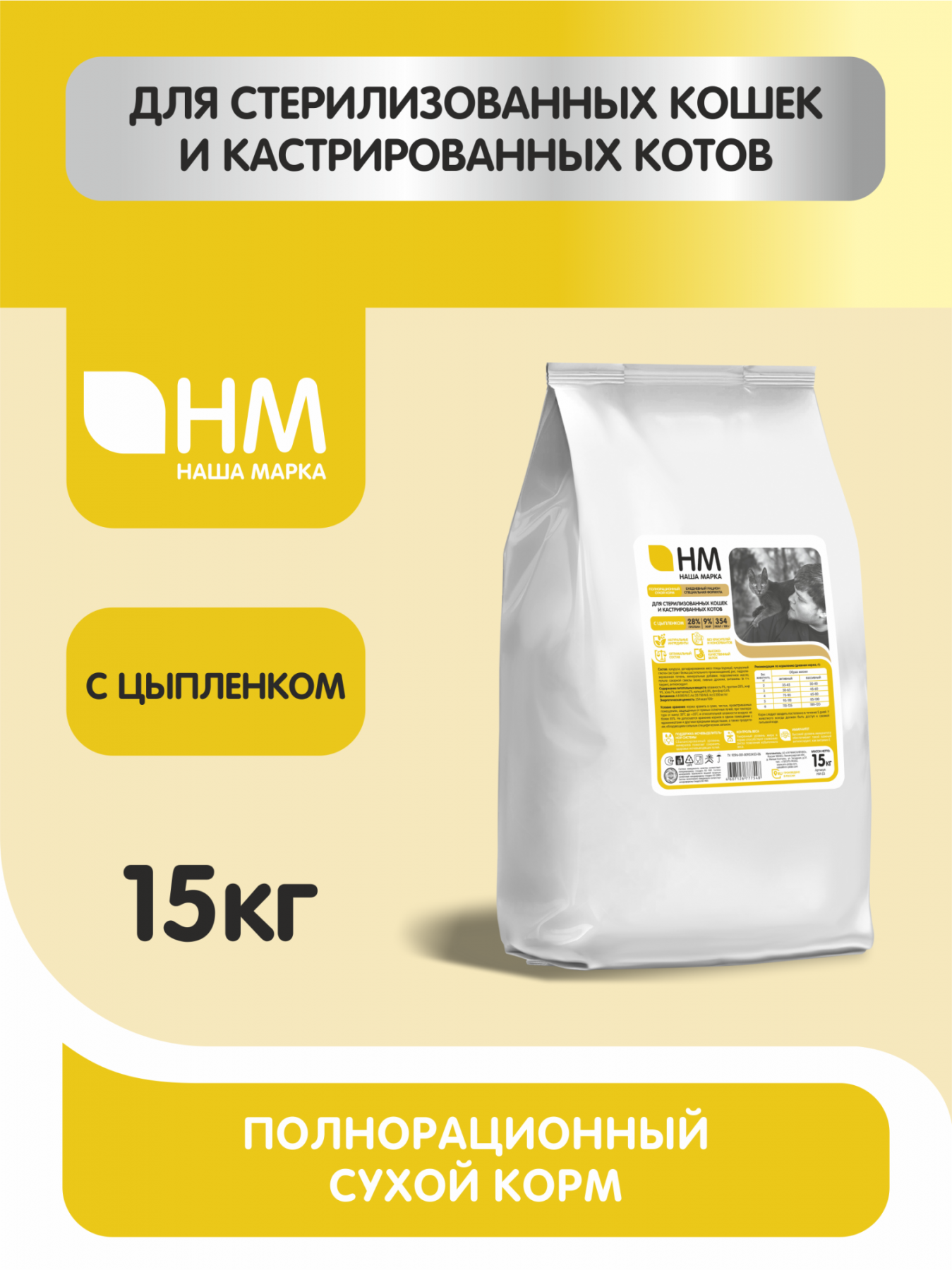 Наша Марка 15кг с цыпленком для стерилизованных и кастрированных кошек и котов сухой корм (777555)