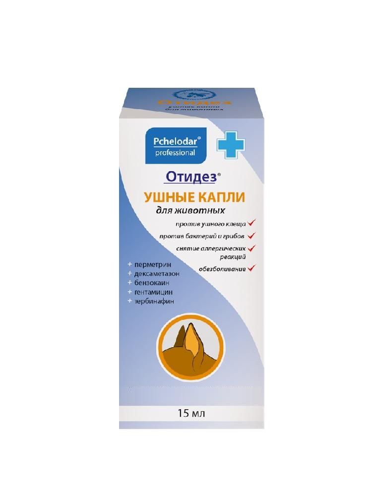 Отидез (Пчелодар) капли ушные для лечения клещей, грибкового и бактериального отита для кошек и собак, 15мл (ЛИЦЕНЗИЯ)