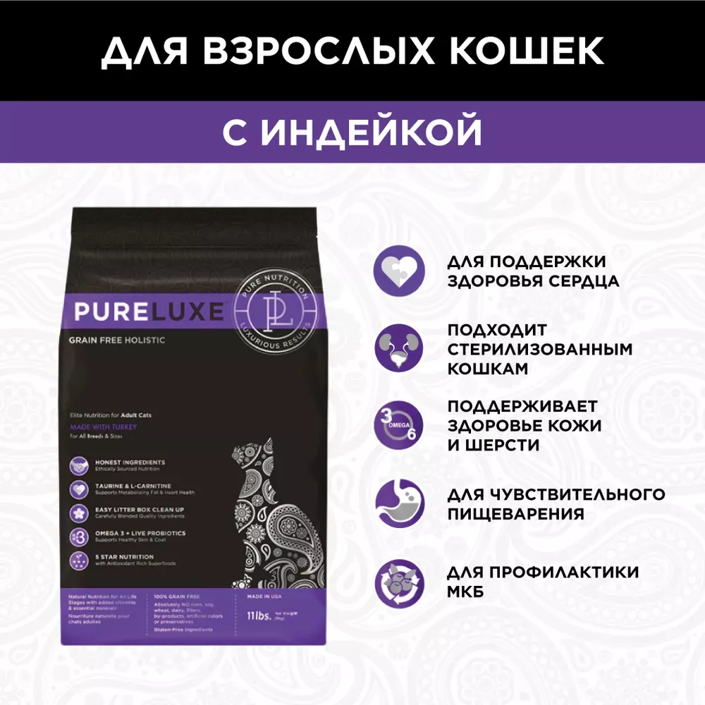 PURELUXE 5кг Элитное Питание для кошек взрослых с индейкой (939808)