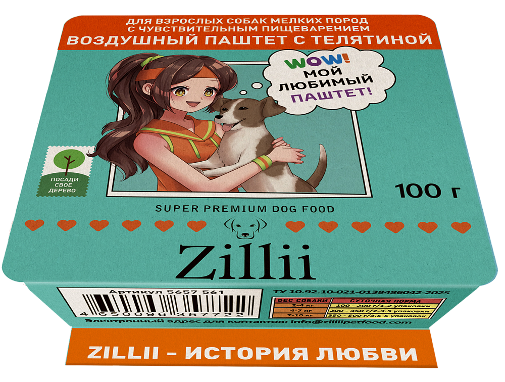 «ZILLII для взрослых собак мелких пород с чувствительным пищеварением. Воздушный паштет с телятиной» — это история о том, как деликатная забота превращается во вкусное и комфортное питание.